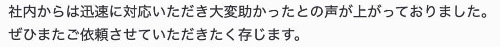 迅速かつ丁寧にご対応いただき大変助かりました!